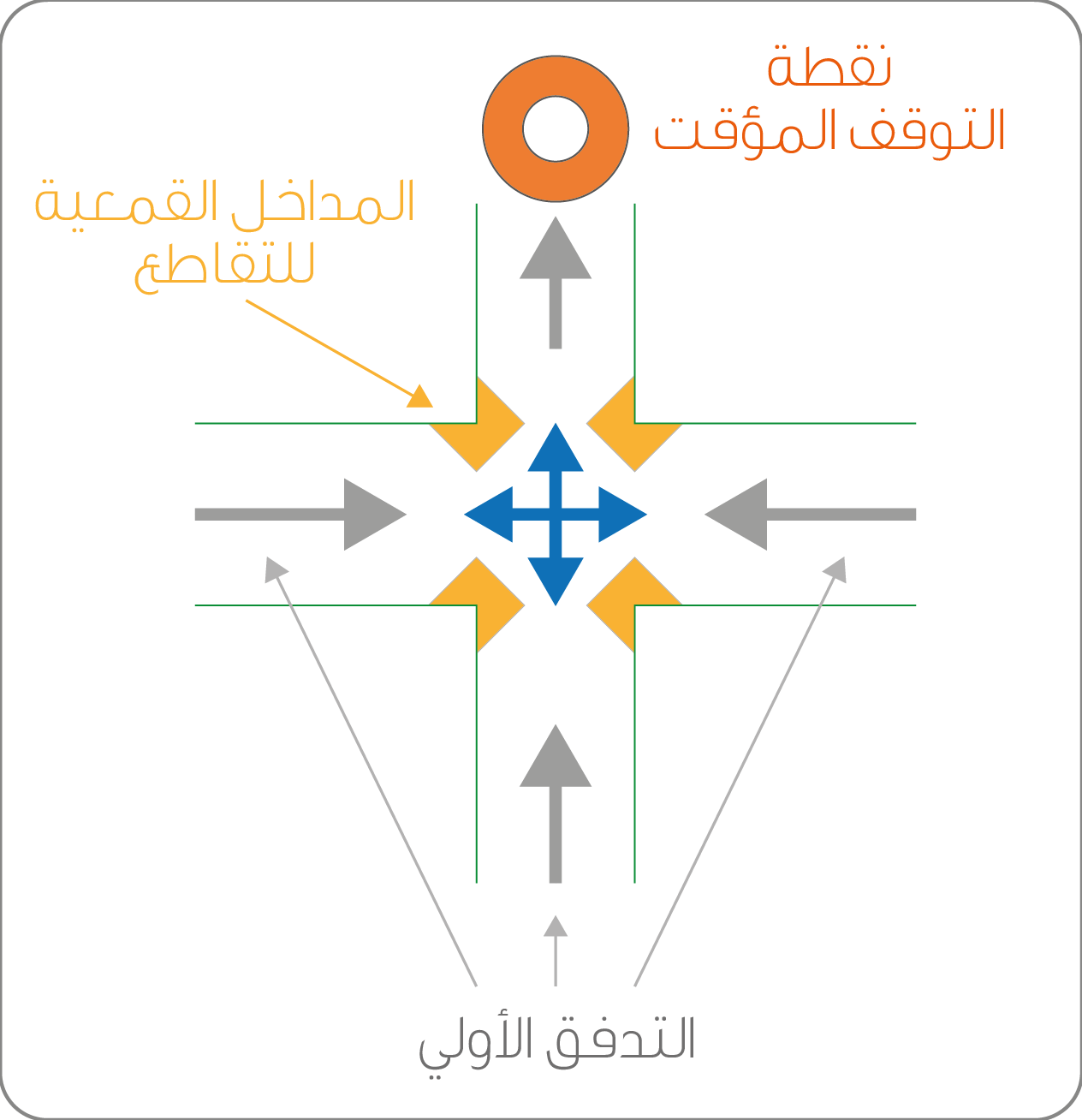 والسيناريو الأخير هو بتغيير شكل مداخل التقاطع لتوافق نظرية القمع وبيان أثر ذلك على ديناميكية الحركة